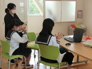 ▲2階職員室前の掲示板で担当を確認してください。▲初の「オンライン」CA活動です。